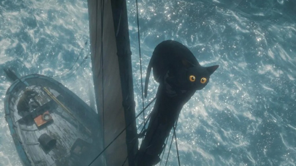 La historia arranca con una gran inundación. Un gato negro pierde su hogar, su espacio seguro, y termina abordando un velero donde se le unen otros animales de diferentes especies. Y aquí es donde empieza la verdadera magia.